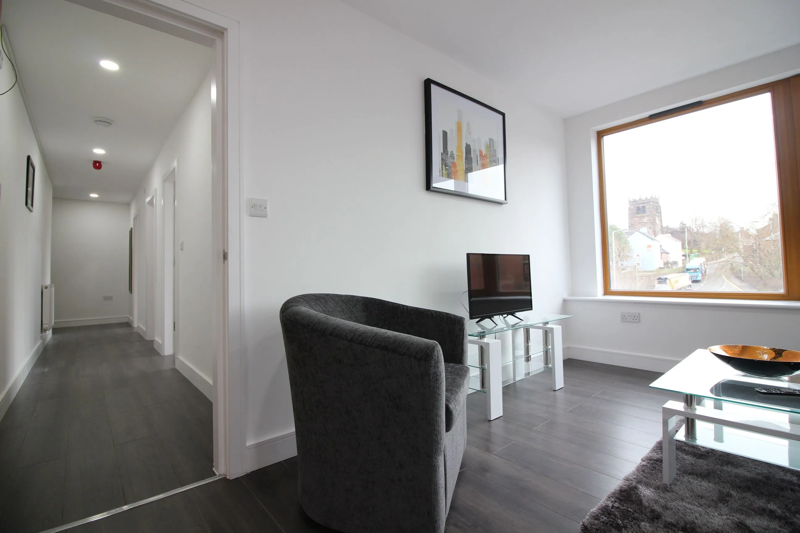 Indulge in the elegance of Britannia Chambers Apartment 3, a sophisticated urban sanctuary nestled in the city's vibrant core. This expansive three-bedroom escape features contemporary luxuries, such as a gourmet kitchen, ultra-fast Wi-Fi, and sumptuous queen-sized beds for supreme relaxation.